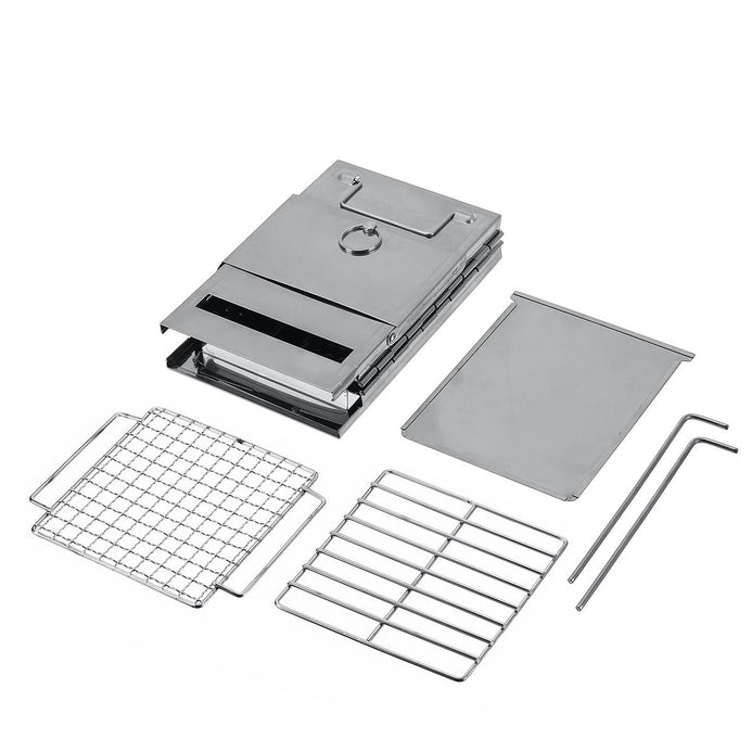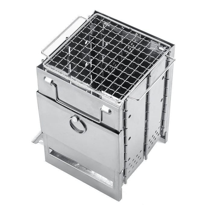 IPRee® Outdoor BBQ Grill Stove Adjustable Stainless Steel Camping Picnic Cooking Wood Stove Set