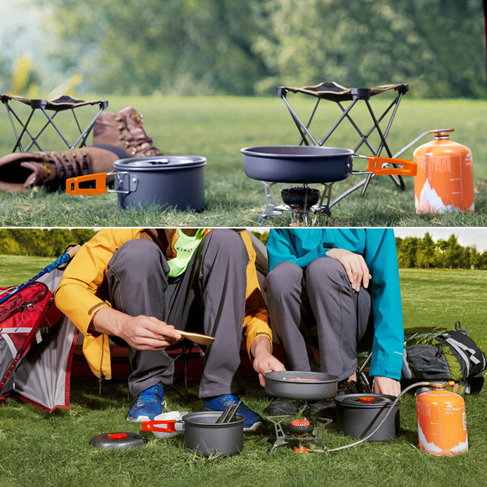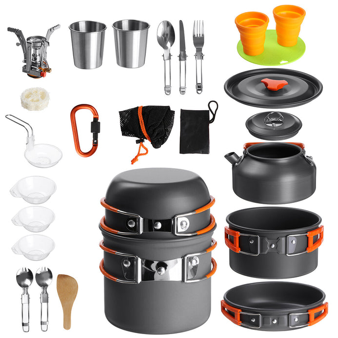 Outdoor Camping Hiking Cookware Tableware Picnic Cooking Pan Fry Pan Kettle Teapot Foldable Fork Spoon Kit Camping Picnic Tools