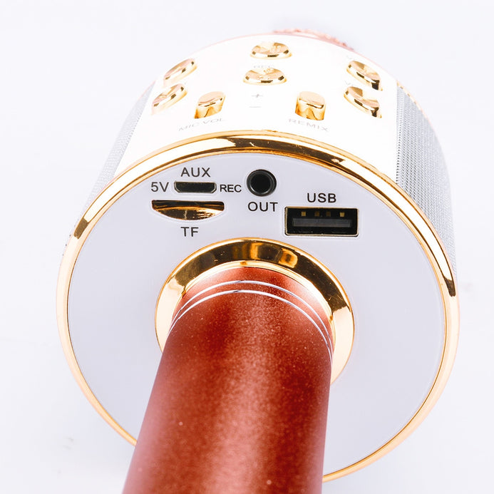 - Wireless Karaoke Microphone Bluetooth Handheld Portable Speaker Home KTV Player with Dancing LED Lights Record Function for Kids